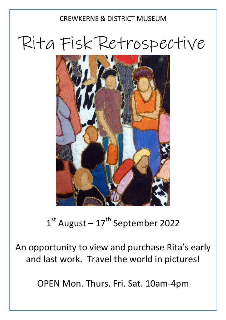 For those who love the skilled work of Rita here is an opportunity to see and purchase some of the last pieces that she created. There are also a few examples of her very early work. If you wish to travel the world in your imagination then visit this exhibition to see her interpretation of her travels in delightful stitched work. 1st August-17th September.