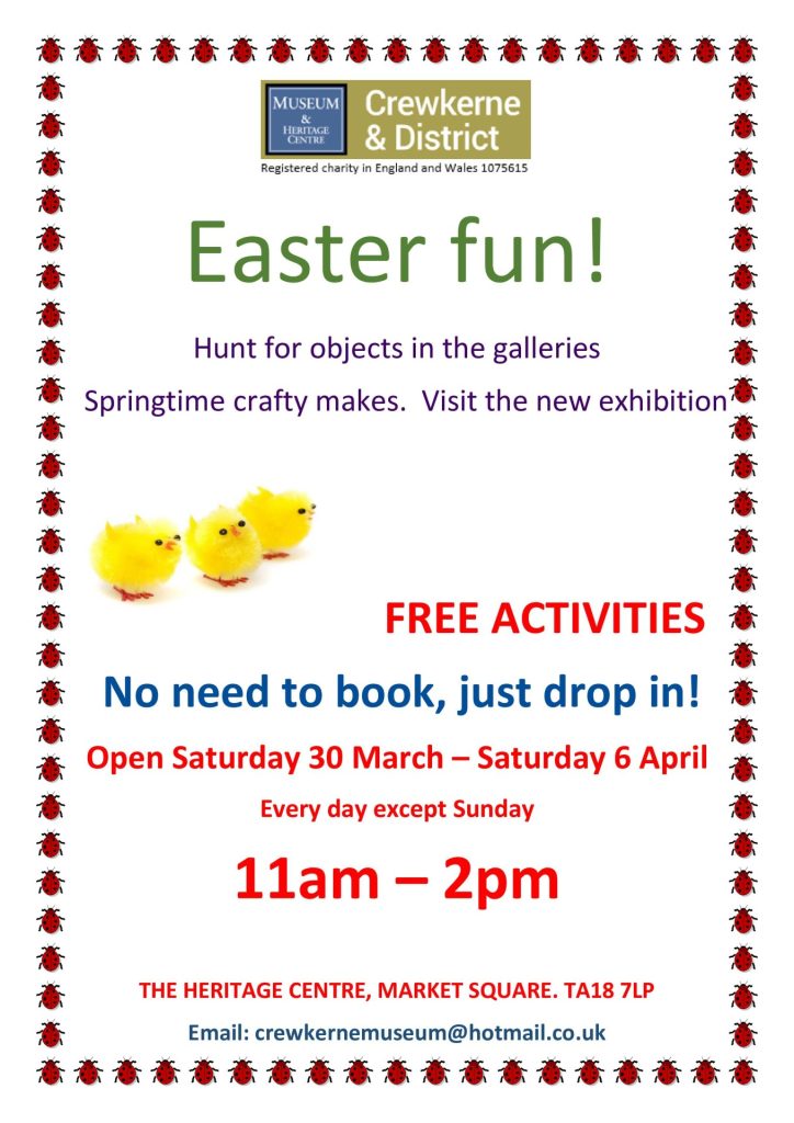 Free activities for young children will be available from 30th March to the 6th April. (Closed Sunday 31st). Explore the galleries and discover hidden objects. Make a Springtime craft to take home.